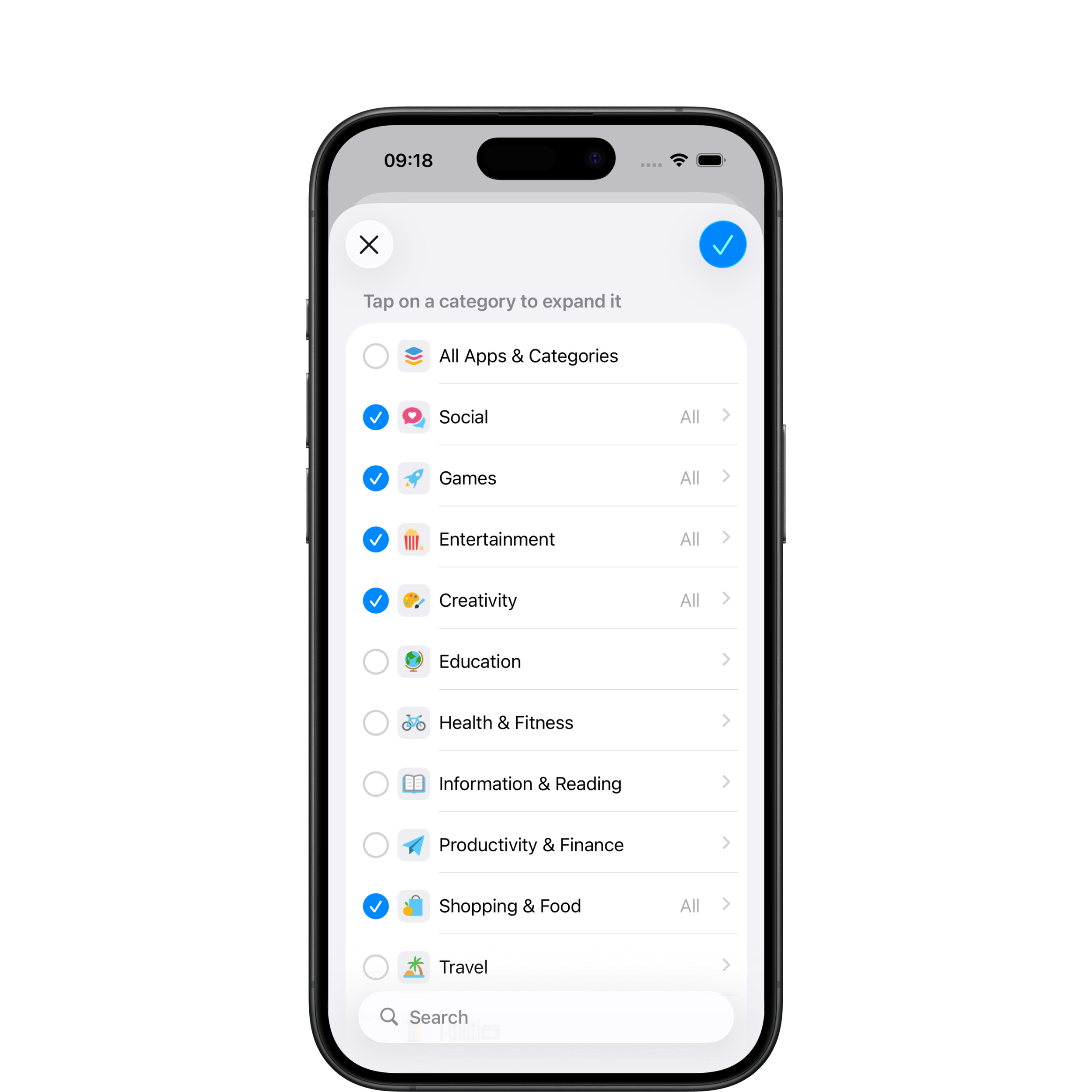 Pick exactly which apps or categories to block, stay in control of your time.