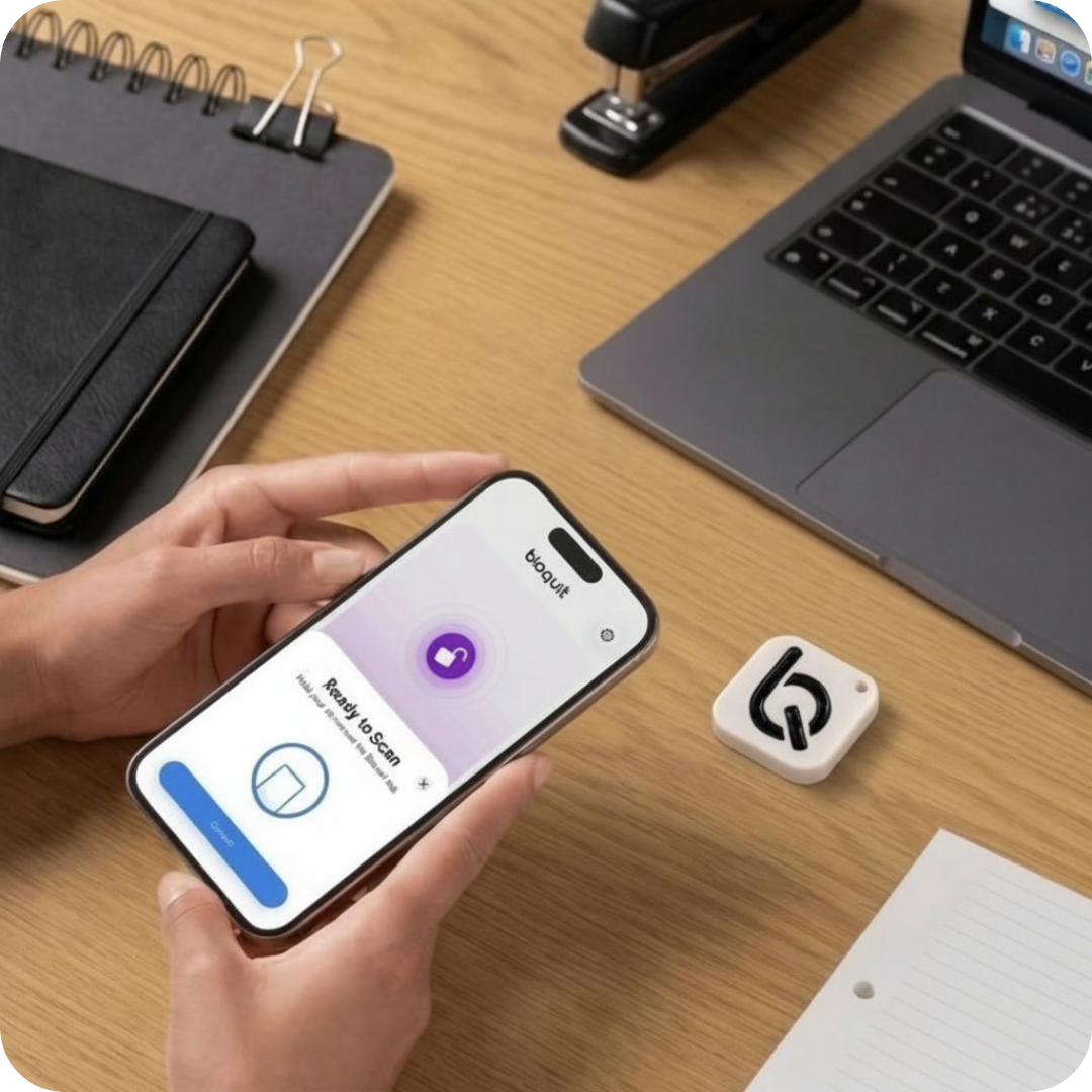 The Bloquit Tag is a tiny, battery-free NFC device that works completely offline. It’s compact, durable, and includes a small hole so you can attach it to a keychain, keep it on your desk, or place it wherever it’s most convenient.